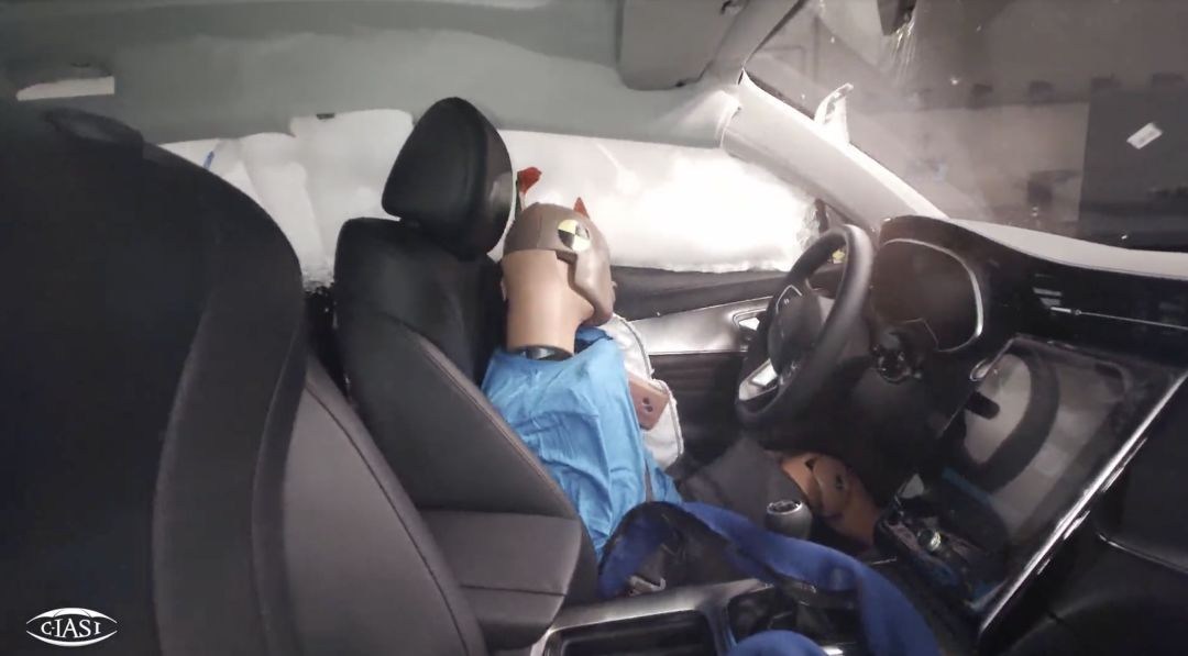 而从测试的画面中也能看出,RX5 MAX的A柱十分坚挺,气囊也没有跑到副驾驶去,与上汽某德系合资品牌的表现形成了鲜明的对比......究竟偷工减料的是中方还是德方呢?留给各位看官自己想吧。